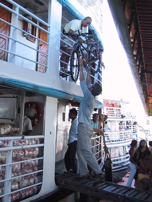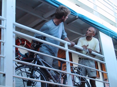| Although Alvaro was not travelling with us he gave us a hand loading our bikes onto the boat. |