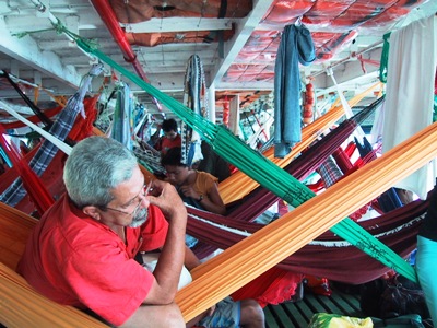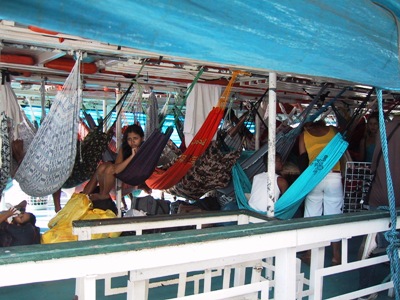 | From Manaus we travelled along the Amazon in a boat to Santarem (a trip which takes 36 hours) in order to pick up a road South to Cuiaba. |