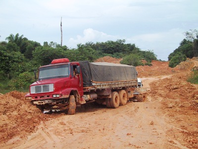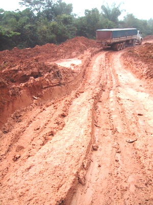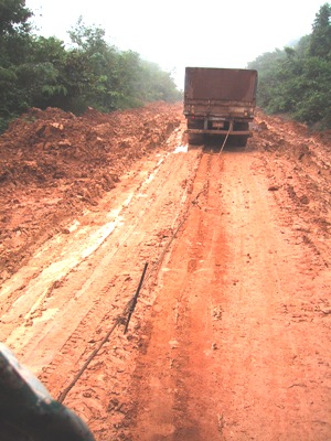 | We met a group of lorry drivers who convinced us with their cheery optimism that the worst part was only about 30 km long and that they could make it though in their trucks the following day if it didn’t rain overnight. |