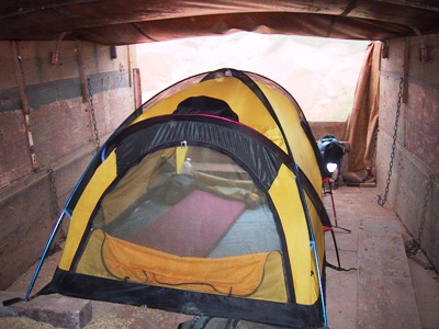 | We camped inside one of the empty trucks. |