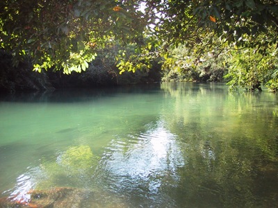 | We spent an afternoon floating downstream in the clear waters surrounded by thousands of fish, so tame that you can almost touch them. |