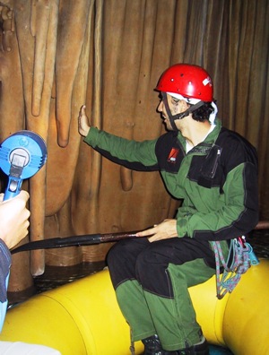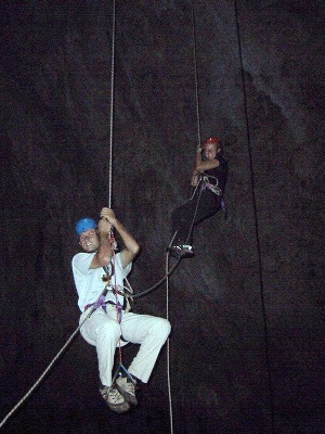 | The ascent out of the abyss was hard work and very slow going. The thin long ropes have considerable stretch and bounce in them which, for Jeremy, was quite disconcerting. |