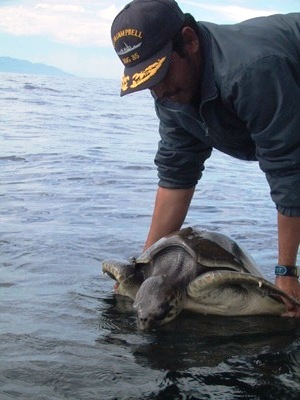 | This was a bit of a surprise; a turtle swam right up to our boat. |