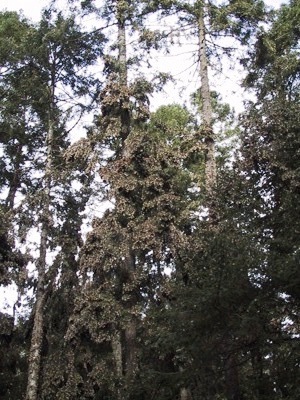 | We stopped at a National Park to see these amazing migratory Monarch butterflies. Each year they make a staggering 2,500 mile journey from Canada and Northern USA to the highlands of Mexico to hibernate and then breed. What is even more astonishing is that, since each butterfly lives only for a few months, it is their offspring who complete the journey cycle, returning to exactly the same place each year. |
