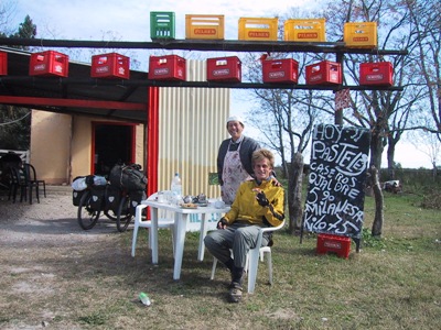 | Flat landscapes often come with strong winds, which more often than not is a disadvantage for us. At first the wind battered our side but later was in our face as if trying to challenge whether we really could make it to Buenos Aires in time for our flight. |