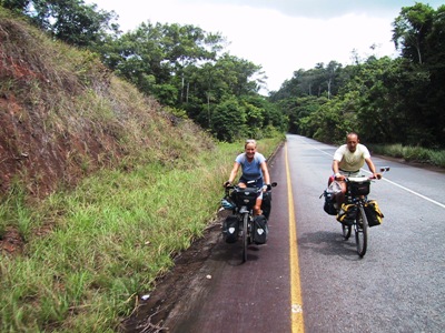 | For a few days we had heard in road side restaurants that there was another cyclist on the road. In El Dorado we finally got to meet him. Alvaro, from Spain was also going to Manaus so we decided to travel together. |