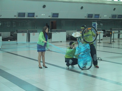 | Sadly the trip had come to an end. We packed our bikes into boxes obtained from a local bike shop for the flight. At the airport we realised that there was another way when we watched in amusement as airline staff wrapping a young boys bike in meters of cling film! |