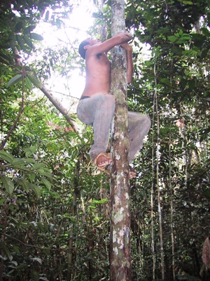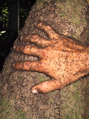 | Our guide, Elson, was determined to prove his masculinity by eating glow worm larvae and putting his hand on biting ants. |
