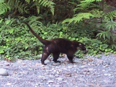 | On one of the hiking trails we spotted a coati, a relative of the raccoon shown here and a sloth sleeping in the trees. |