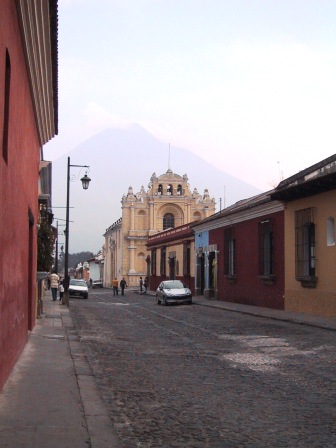| Antigua Guatemala means 'Old Guatemala' - the old capital city. It is a lovely colonial city in a landscape dominated by three volcanoes, a popular destination for foreign tourists and for Guatemalans at the weekends. |
