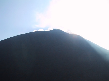 | As 'the boat' ascended above the cloud line the top of the cone came into view. By now there is a strong smell of rotten eggs. |