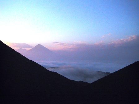 | Pacaya is a 2,552m high active volcano close to Antigua Guatemala and named after an edible bamboo like plant which grows on its slopes. We made a last minute decision to climb it which involved paying a taxi driver to chase and flag down the tourist bus on the way out of Antigua to take us to the trailhead. |