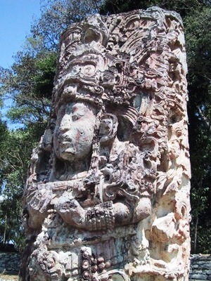 Copan is famous for its intricately carved stone stelae which depict the Kingdom's rulers.  This one is King 18 Rabbit who ruled between 695 and 738 AD.