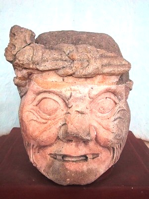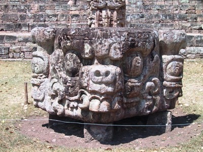 The people of Copan thought of the world as the body of a crocodile floating on water, its four corners held up by gods known as Pauahtuns, one of whom is depicted in this sculpture.
