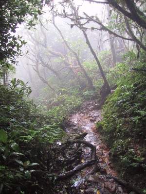 | The slopes of Volcan Maderas are covered in cloud forest, a misty, wet environment. |
