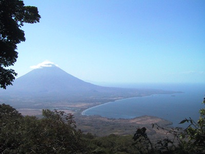 | Beth trekking up Volcan Maderas, one of the volcanoes which make up the Island, with a local guide. |